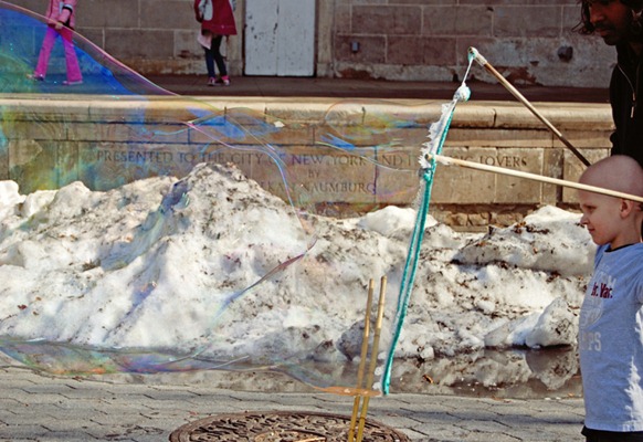 I never tire of your NYC pics! The bench ... ah the bench .... I think that may be my fave ..... but the bubbles and the little girl are at the top too. Brings back memories of blowing bubbles with my kids when they were little.