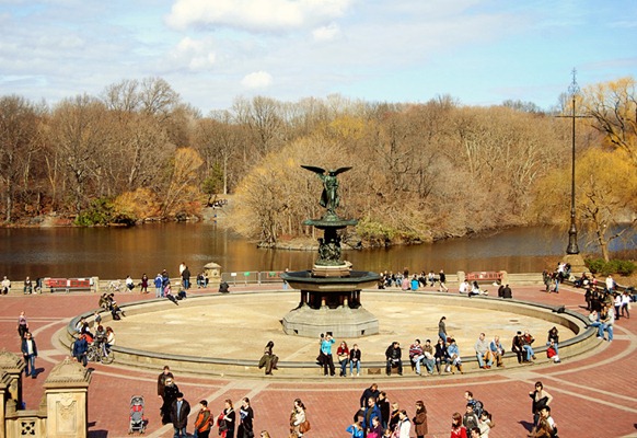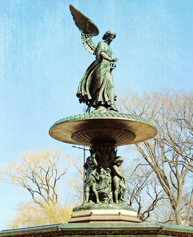 The 26-foot high fountain is one of the largest in NY. It’s a neoclassical sculpture and is also known as the Angel of Waters. She stands above four small cherubim who represent peace, purity, temperance, and health.