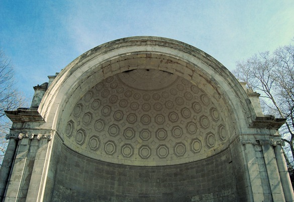 This is the Naumburg Bandshell, presented to the city in 1923. The Naumburg Orchestral Concerts have been held here since 1905.